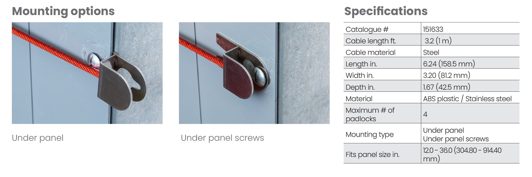 Need to lock out a panel? Get a more efficient lockout process with the Panel Lockout. Instead of locking out individual breakers, this device effectively locks out all circuit breakers — at once. That’s because it attaches to closed panel doors. It offers easy installation with its one-piece design, and features an adjustable cable to fit a wide range of panel doors. For extra security, this device accommodates up to four padlocks, and works well with hasps. When you need to stay safe and improve lockout efficiency, get the Panel Lockout from Brady.
