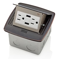 LEVITON CANADA PFUS1-BZ Pop-Up Floor Box with Dual Type A and USB Charger, Outlet 2-Pole, 3-Wire Bronze