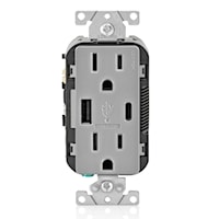 LEVITON T5638-GY DECORA TYPE AC USB 15A 18W GRAY
