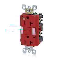 HUBBELL GFTWRST20SNAPR SnapConnect® Decorator, Tamper and Weather Resistant Self-Test GFCI Straight Blade Duplex Receptacle 20 A, 5-20R Red