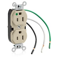 LEVITON 8200-LI Receptacle duplex 6" wire leads 15A 125V ivory