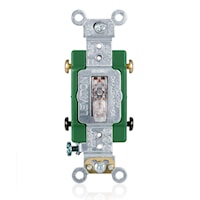 LEVITON 1203-PLG Pilot Light AC Toggle Switch 3-Way 15 A, 120 VAC, Back or Side Wired