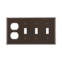 LEVITON P38 Wallplate combination standard 4-gang 1-duplex 3-toggle thermoset brown