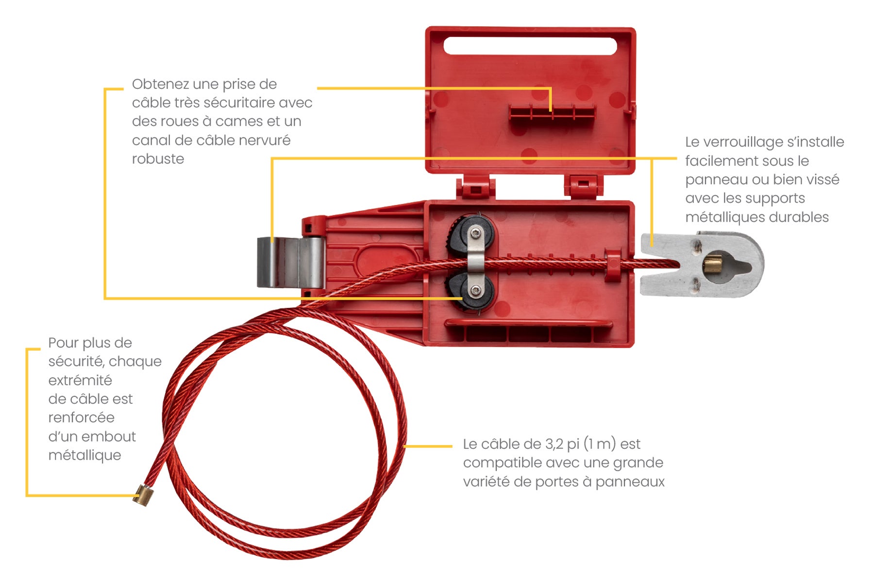 Avez-vous besoin de verrouiller un panneau électrique? Obtenez un processus de verrouillage plus efficace grâce au verrouillage pour panneau électrique. Au lieu de verrouiller les disjoncteurs individuels, cet appareil verrouille efficacement tous les disjoncteurs… à la fois. Cela se fait par le biais d’une fixation sur les portes fermées du panneau. Il offre une installation facile grâce à sa conception monobloc et dispose d'un câble réglable pour s'adapter à une large gamme de portes de panneaux électriques. Pour plus de sécurité, cet appareil peut accepter jusqu'à quatre cadenas et fonctionne bien avec les moraillons. Lorsque vous avez besoin de rester en sécurité et d'améliorer l'efficacité du verrouillage, procurez-vous le verrouillage pour panneau électrique de Brady.